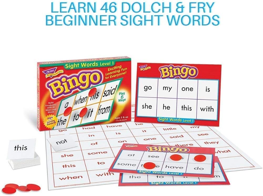 Sight Words Bingo - Language Building Skill Game for Home or Classroom T6064 Build Vocabulary with 46 Most-Used Words 3 - 36 players Age 5 and up Cover the Spaces Needed to Win Call Bingo Visit the TREND ENTERPRISES INC. The first person to cover everything on their card wins. Simply print pdf file with sight word bingo printable and you are ready for a fun sight words activity.